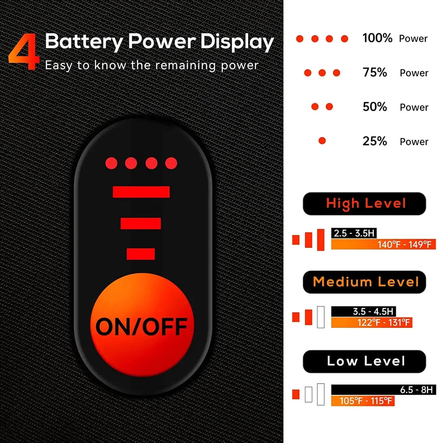 Each pair is powered by high-capacity 3000 mAh / 22.2 W batteries, delivering longer and more stable heat compared to many competitors that use smaller batteries.