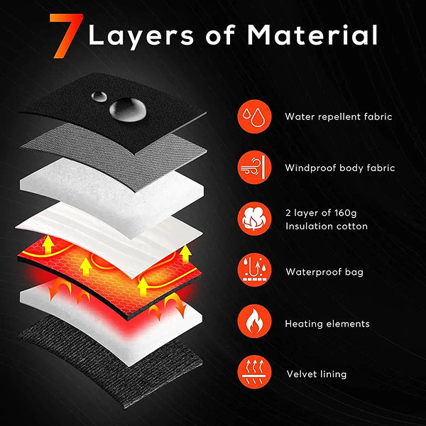 Unlike most heated gloves that use only 2–4 layers, PolarWear’s gloves feature a meticulously engineered 7-layer construction. This advanced structure maximizes insulation and heat retention while maintaining a sleek, non-bulky feel — perfect for both outdoor adventures and daily use.