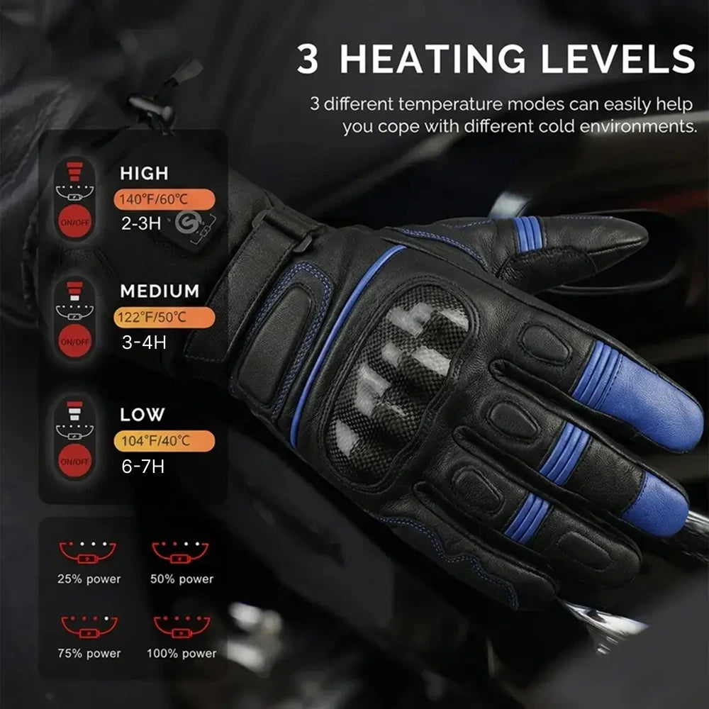 Our gloves provide up to 6–8 hours of consistent heat depending on the selected heat level and external temperature — enough for most rides without interruption.